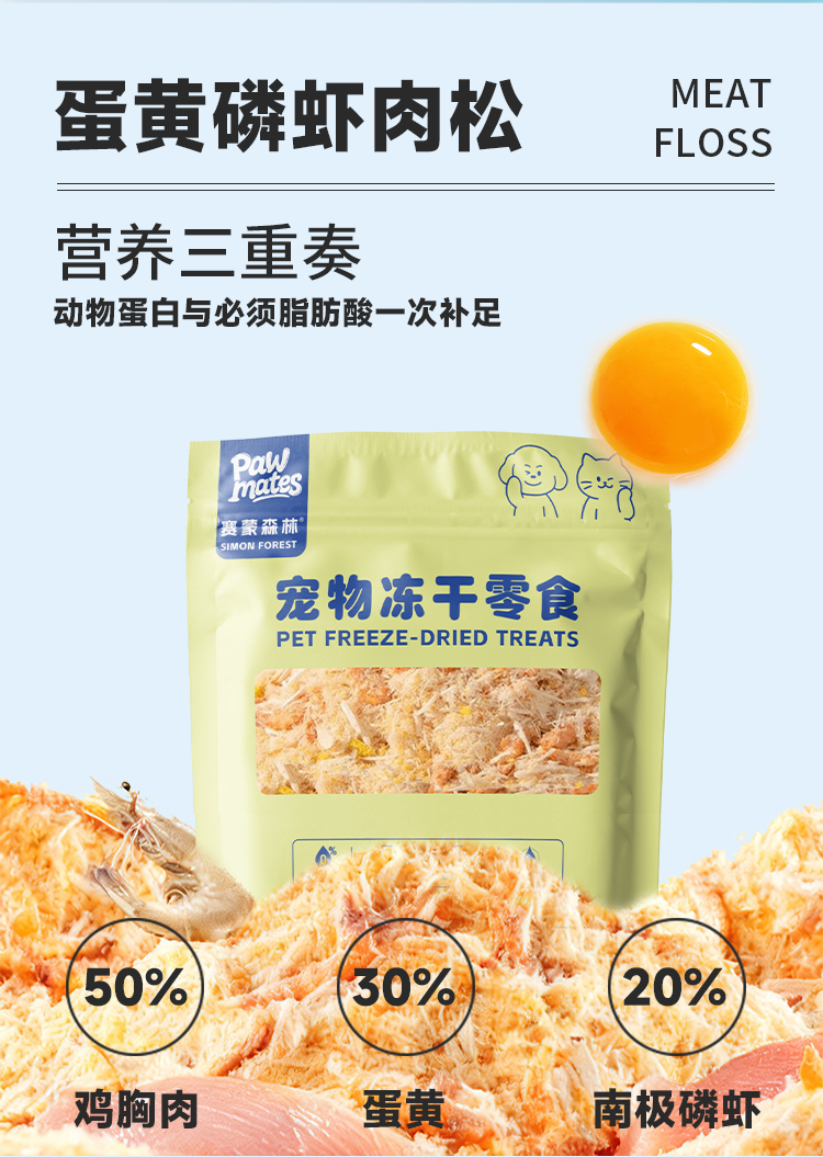 赛蒙森林 宠物冻干零食 蛋黄磷虾肉松 30g